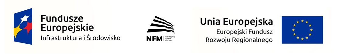 Rozwój działalności artystycznej i edukacyjnej NFM poprzez zakup sprzętu i wyposażenia współfinansowany przez Unię Europejską ze środków Funduszu Spójności oraz Europejskiego Funduszu Rozwoju Regionalnego VIII osi priorytetowej Ochrona dziedzictwa kulturowego i rozwój zasobów kultury, dla której Instytucją Pośredniczącą jest Ministerstwo Kultury i Dziedzictwa Narodowego. DZIAŁANIE: 8.1 Ochrona dziedzictwa kulturowego i rozwój zasobów kultury Programu Operacyjnego Infrastruktura I Środowisko 2014-2020 | Więcej o projekcie